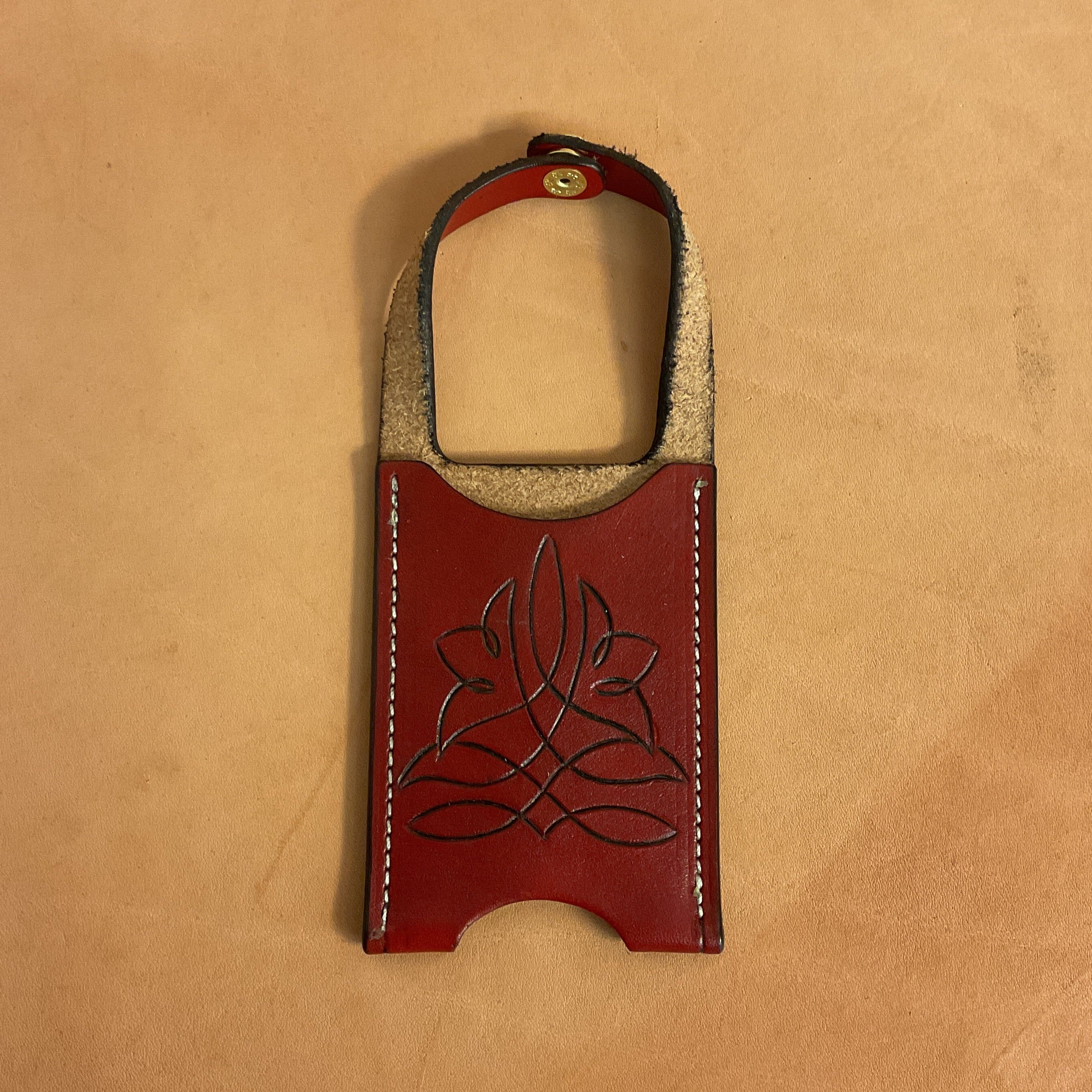 Handcrafted boot wallets featuring a compact 3.5" x 2.75" design perfect for carrying cash and cards. Available in assorted colors, all made right here in our leather shop.