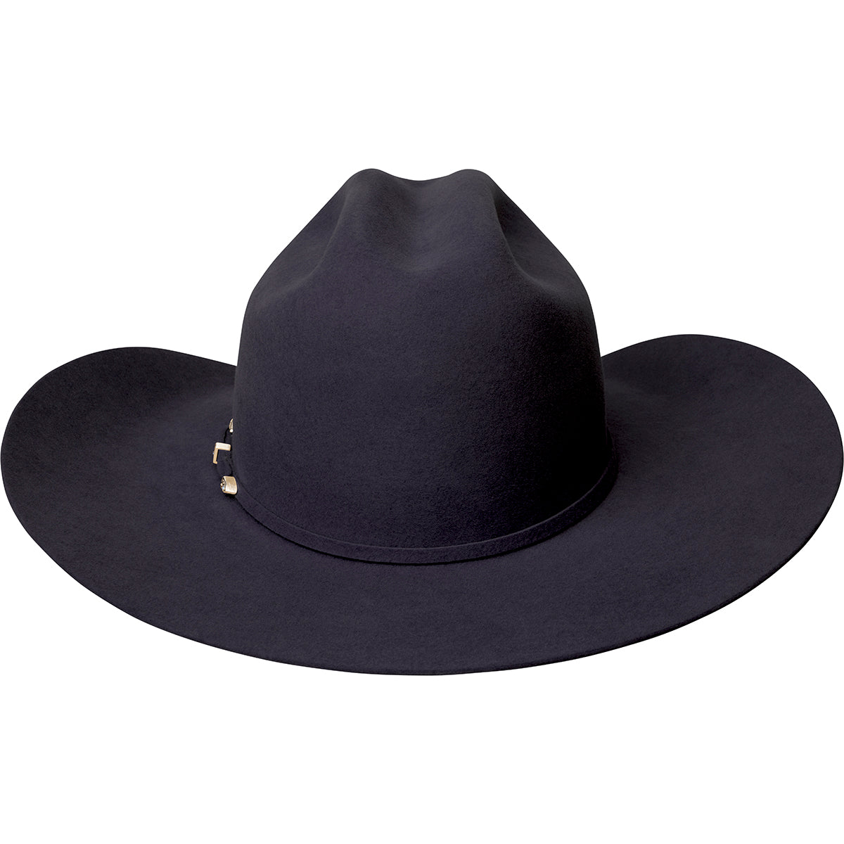 The Stellar 20x Fur Felt hat has a 4 1/2 inch Rodeo crown, and it is finished with a self-felt band and a gorgeous, silver embellished buckle set. For those who like to customize their own hats, Stellar is available in an Open crown. Made in the USA of globally sourced materials.