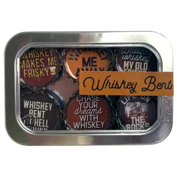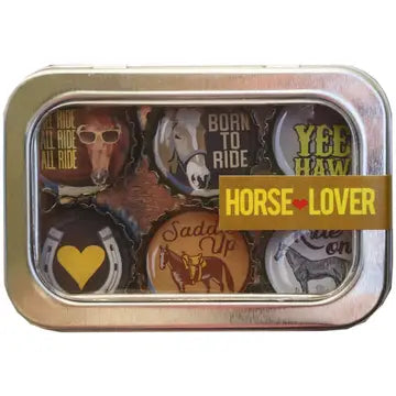 Western Decor Handmade, woman owned, eco-friendly magnets made from upcycled bottlecaps. We pour eco-conscious epoxy over the image creating a glassy finish. A perfect gift for the Western shop. Six-pack set of Cowboy themed magnets, made in the USA from recycled bottle caps. Our magnetic expressions make fabulous and unique gifts and can be used in the kitchen, office or on any magnetic surface. Each magnet set comes in the display tin (just like in the picture) and the magnets are strong enough to hold the entire tin on a magnetic surface for display.