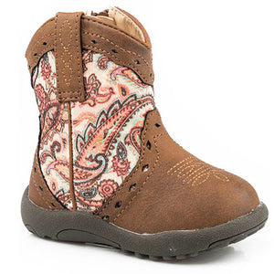 Infant Red Paisley & Denim Cotton Moccasins - Trendy Baby Mocc Shop