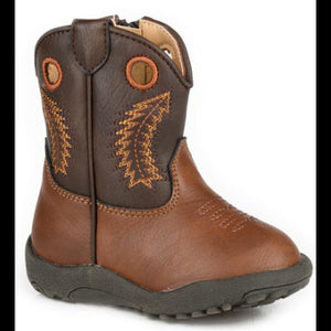 Infant Brown Faux Leather Vamp Boots - Roper