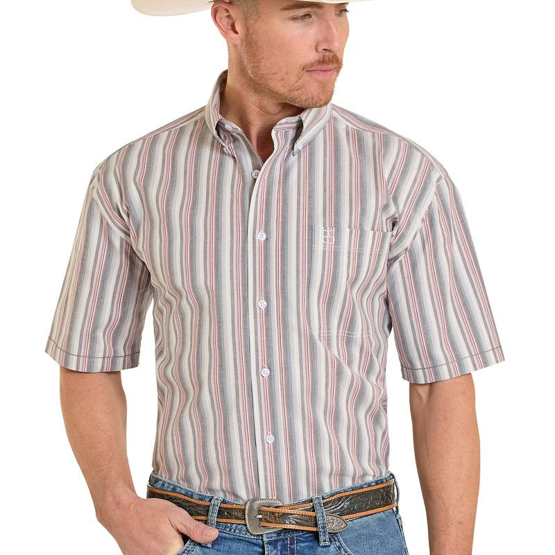 Classic western style meets everyday comfort in this striped short sleeve button-down. The maroon and white pattern delivers timeless appeal, while the single chest pocket adds practical functionality. Perfect for casual wear, ranch work, or a night out—this shirt pairs effortlessly with jeans or chinos. Durable construction ensures it holds up to regular wear and washing.