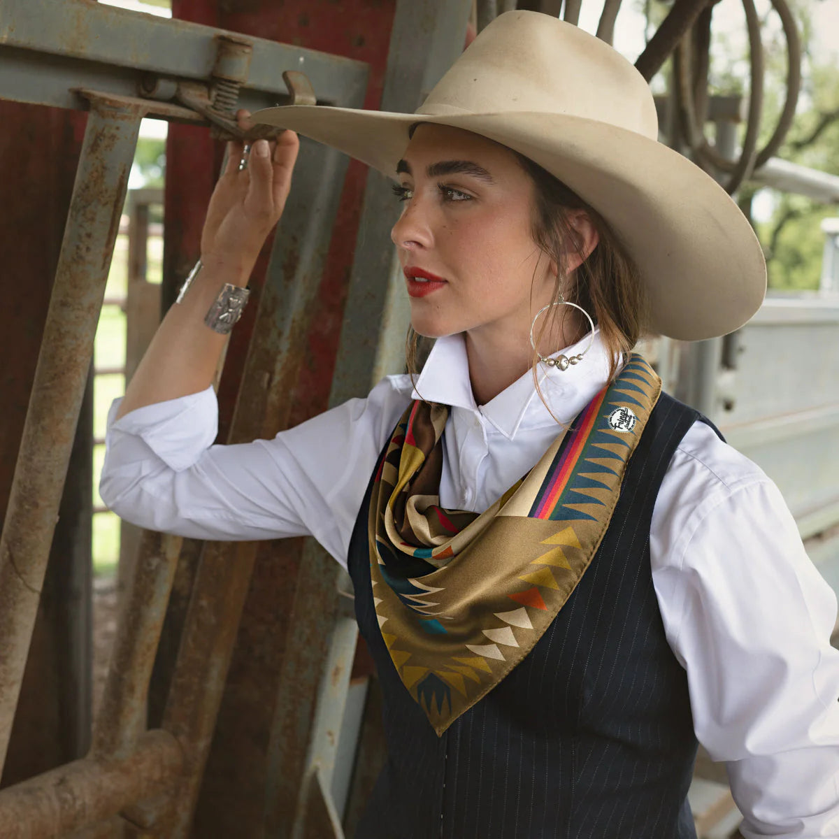 The Cross Me silk scarf is our 35" Long-Tall and is 100% Satin Silk. It honors the spirit of the Southwest—where tradition, nature, and the sacred cycles of life intersect, made for those who walk their own path.