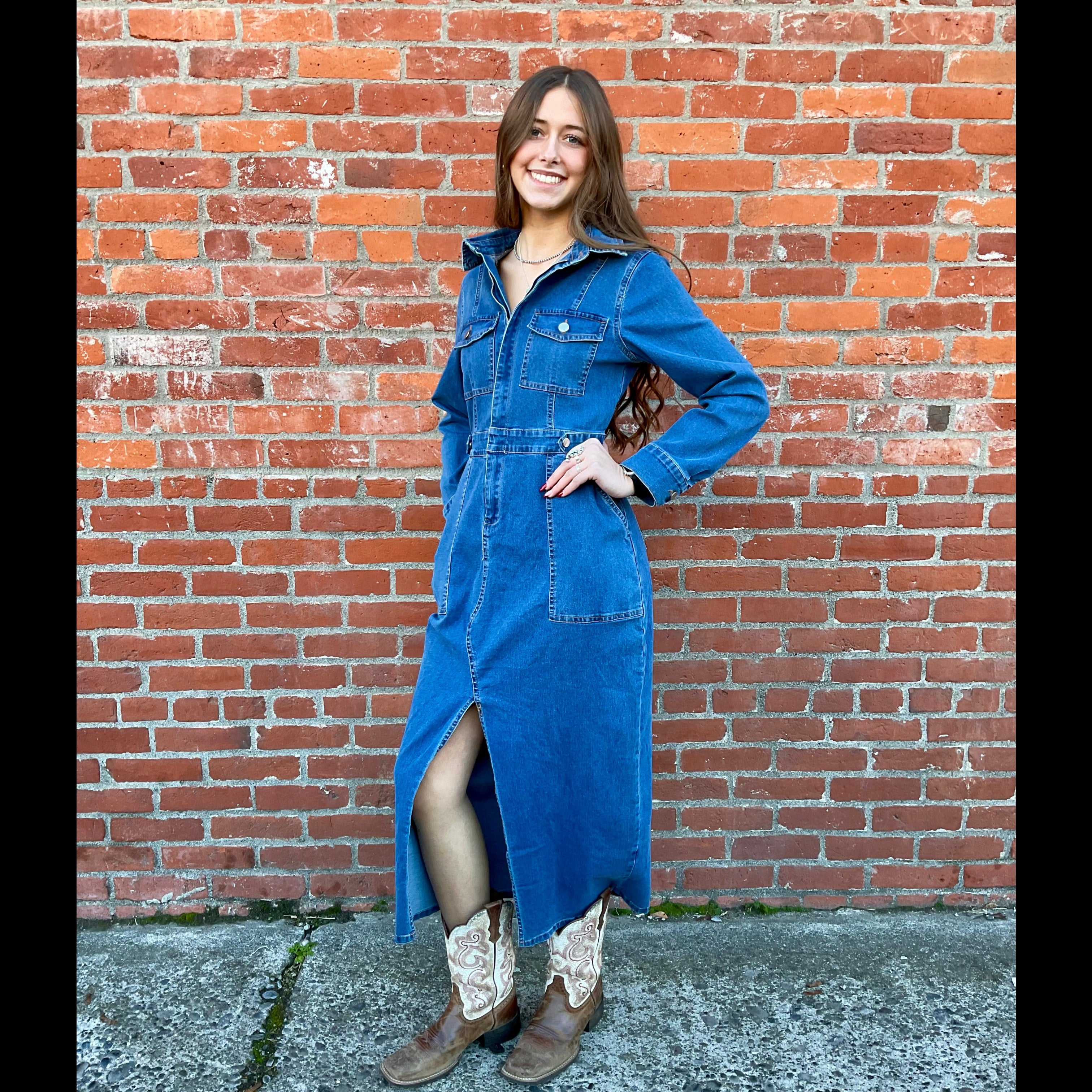 Women's Denim Maxi Dress - Lucky & Blessed