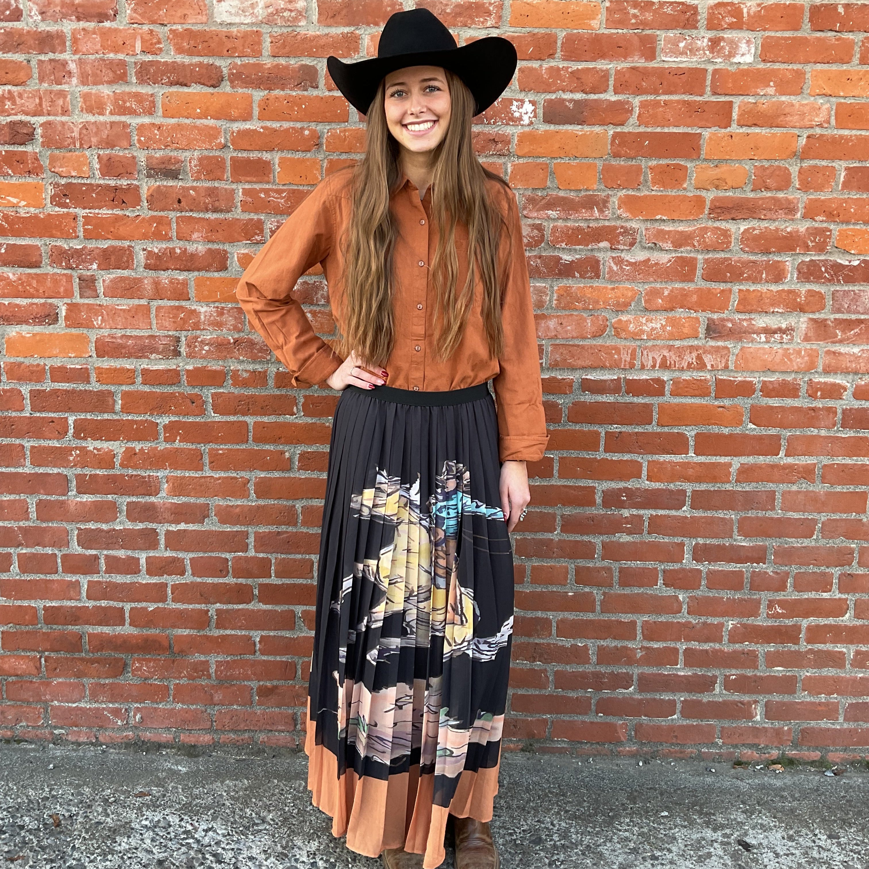 Western Cowboy Printed Pleated Skirt from Lucky & Blessed
