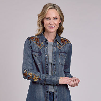 Women's Embroidered Denim Snap Dress - Stetson