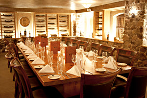 Surrounded by custom wine shelves and walls of gorgeous stone, the Wine Cellar offers additional privacy in an elegant and impressive setting.